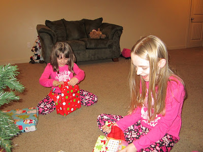 On Christmas Eve I let them open there pajamas, ornaments and gifts from each other. They girls get so excited to open a few things the day before Christmas.